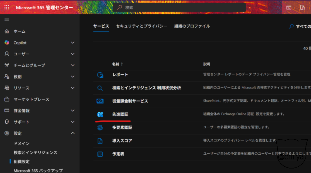 - 管理者アカウントで Microsoft 365 管理センター にサインイン