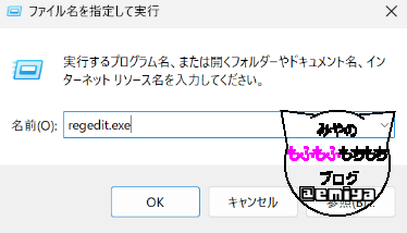 - Windows 10 / 11: [Windowsキー + R] → 「regedit」と入力 → Enter