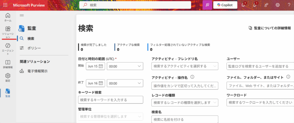 3. GUI(Microsoft Purview)からの監査ログ確認手順