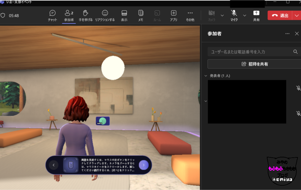 アバター選択後には、仮想空間に参加することができました。