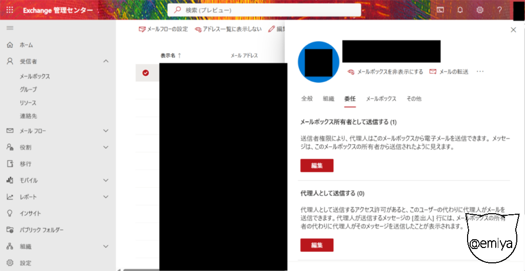 - Exchange 管理センター → [受信者] → [メールボックス]